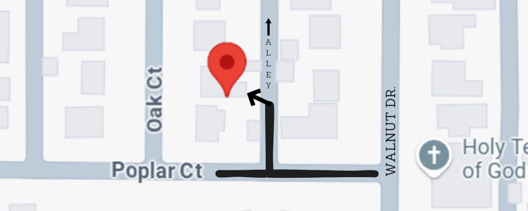 Turn into the alley from Poplar Ct. and the unit will be the second house ( yellow house) on your left.